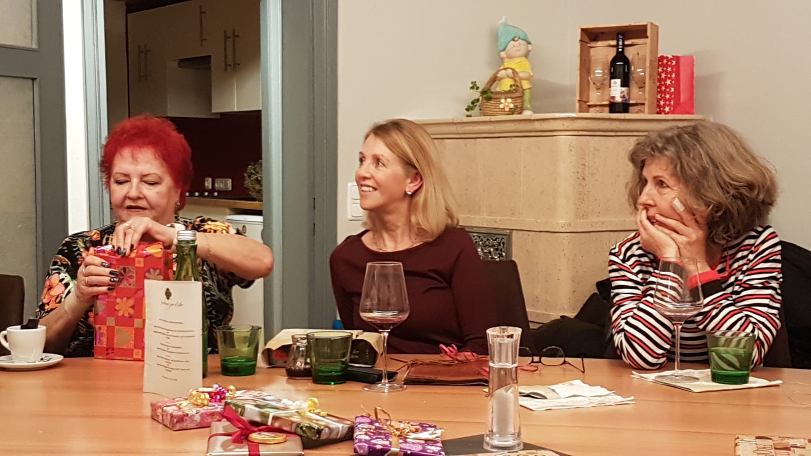 Bei gemütlicher Athmosphäre, gutem Essen und dem einen oder anderen Gläschen ließen wir das Jahr mit unserer Weihnachtsfeier ausklingen. Neben dem Lesen von weihnachtlichen Texten hat uns der neu eingeführte Brauch des Bücher-Wichtelns sehr viel Spaß und Freude bereitet.